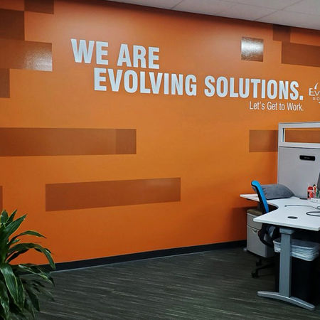 Full interior rebrand, vinyl, acrylic, metal, dimensional elements. Bursts of color throughout.